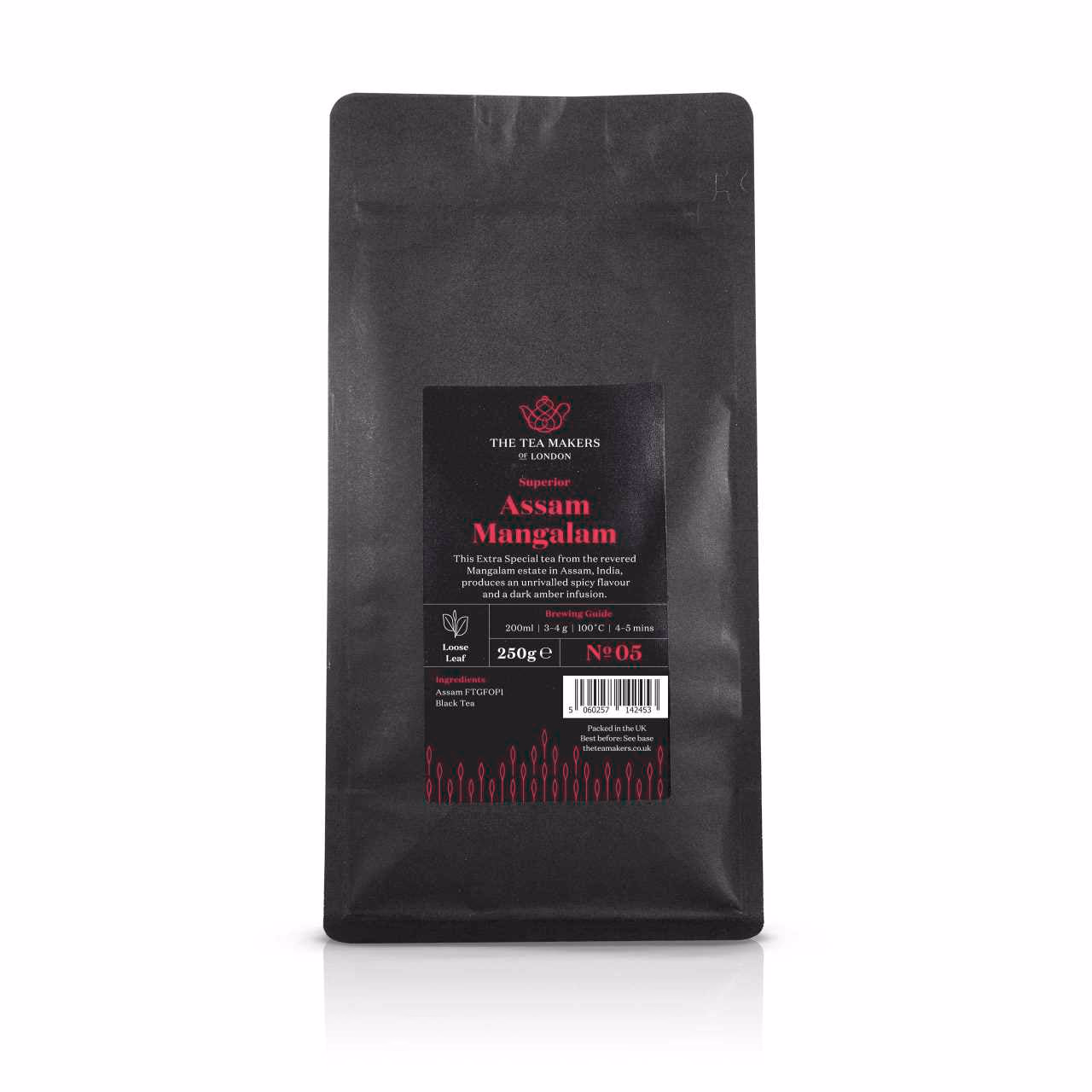 Our Assam Mangalam loose-leaf tea is a perfect example of a beautifully made, authentic single origin Assam black tea. Dark amber in colour, this Extra Special FTGFOP1 Indian tea boasts long, wiry leaves with an abundance of golden tips, making for a rich, full-bodied, spicy and malty brew with a delicious caramel aroma.