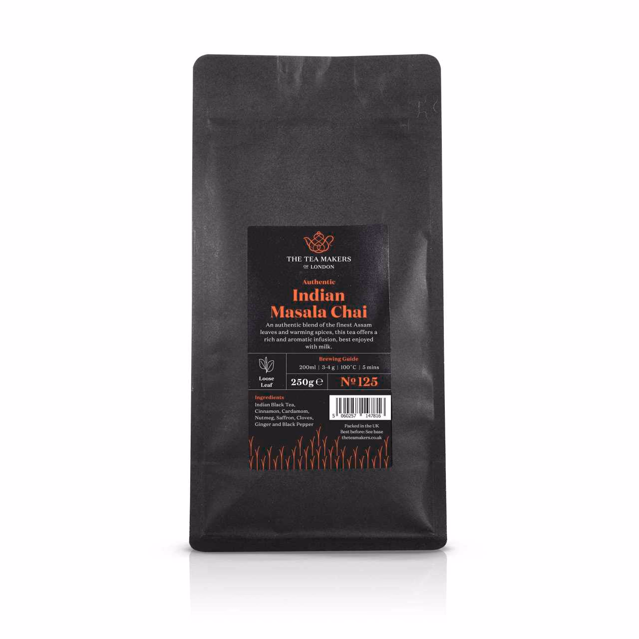 First, there's that comforting aroma of warm spice rising from the amber-coloured infusion. Then there are the exotic, traditionally grown Indian spices on the palate – these are what make this famous black tea so wonderfully rich and exotically flavoursome. Finally, there are those strong and full-bodied orthodox Assam leaves. All of which combine to create an exceptionally calming, sweet and spicy chai loose-leaf tea, best enjoyed with milk and ideally drunk while curled up on a sofa with a good book!