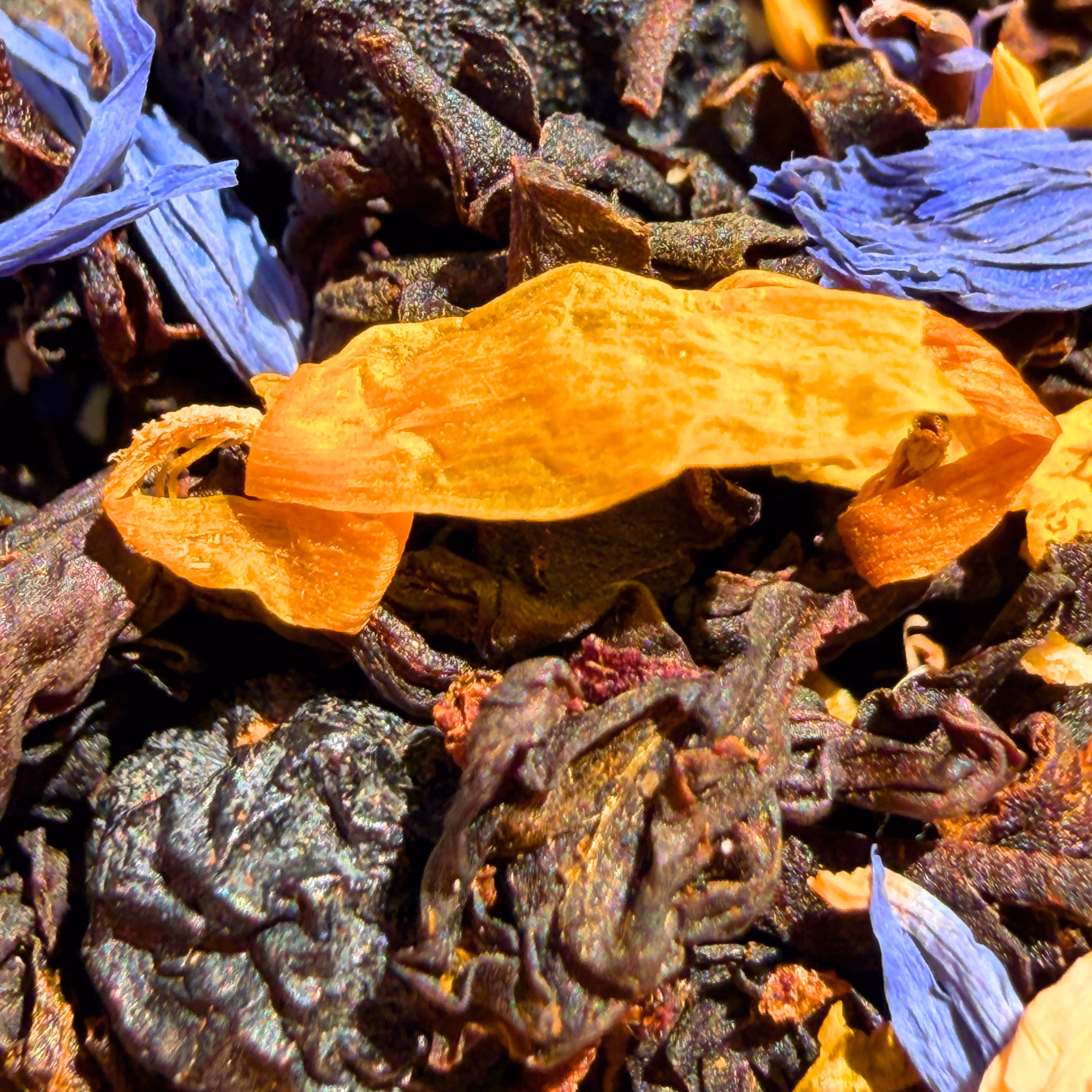 Black tea (Kenyan, Sri Lankan and Indian), blueberries, maple syrup, cornflower, calendula, marigold & sunflower petals, natural flavours.