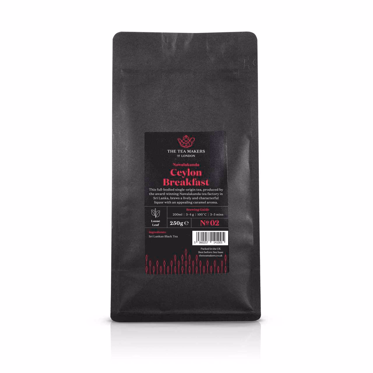 Our award-winning Ceylon Breakfast Black Tea made by Tea Master Perirs makes a brisk, copper-coloured brew with subtle spicy notes, a rich mouthfeel and a warm caramel aroma – and provides a full-bodied but lighter alternative to our popular English Breakfast blend.