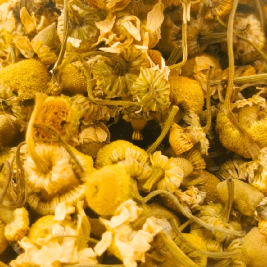 Chamomile Tea is a naturally caffeine-free loose leaf herbal infusion crafted from whole organic chamomile blossoms — soft, floral and deeply soothing.
