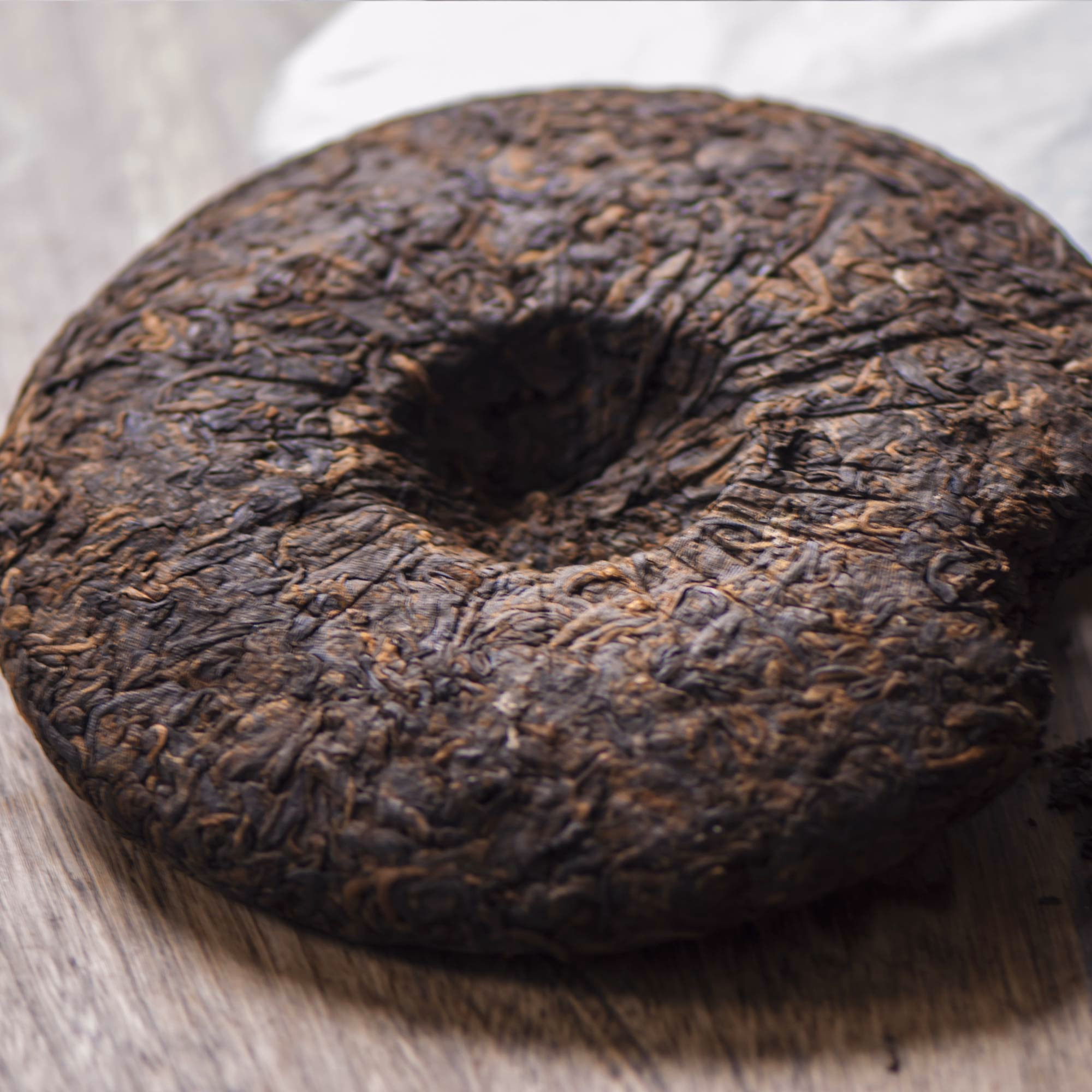 A complete "Bing Cha" - a pressed pu'er cake. This very mellow, ripe (shóu) pu'er tea has a soft, velvety texture.