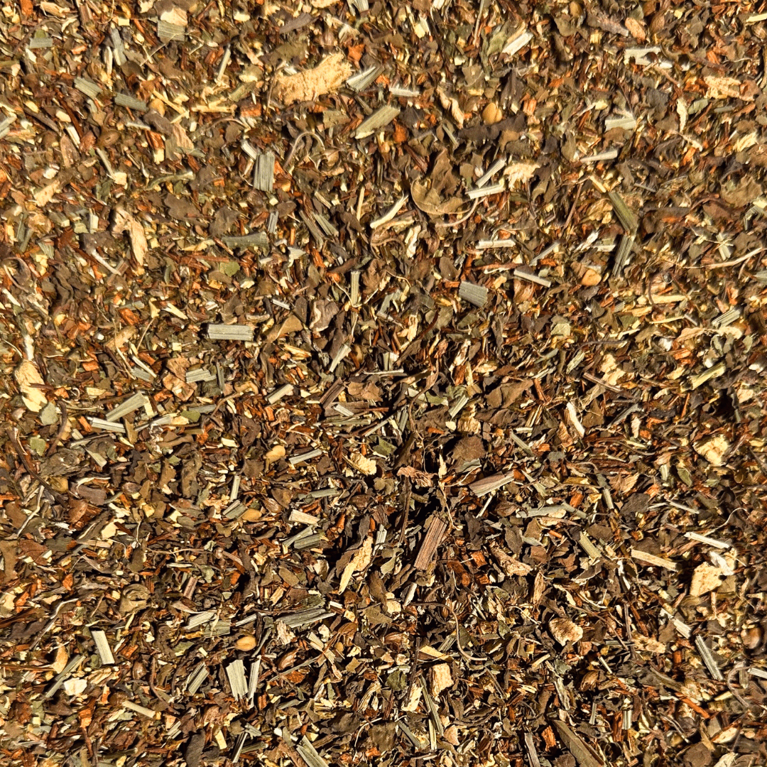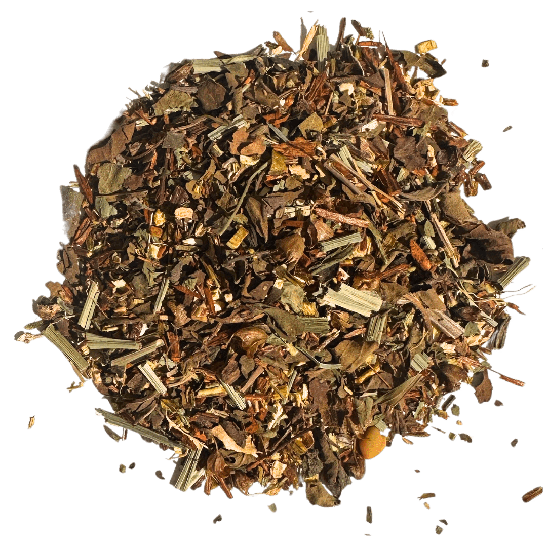 Green rooibos, Red rooibos, Tulsi (holy basil), Dandelion leaf, Dandelion root, Ginger, Fenugreek, Lemongrass, Liquorice root