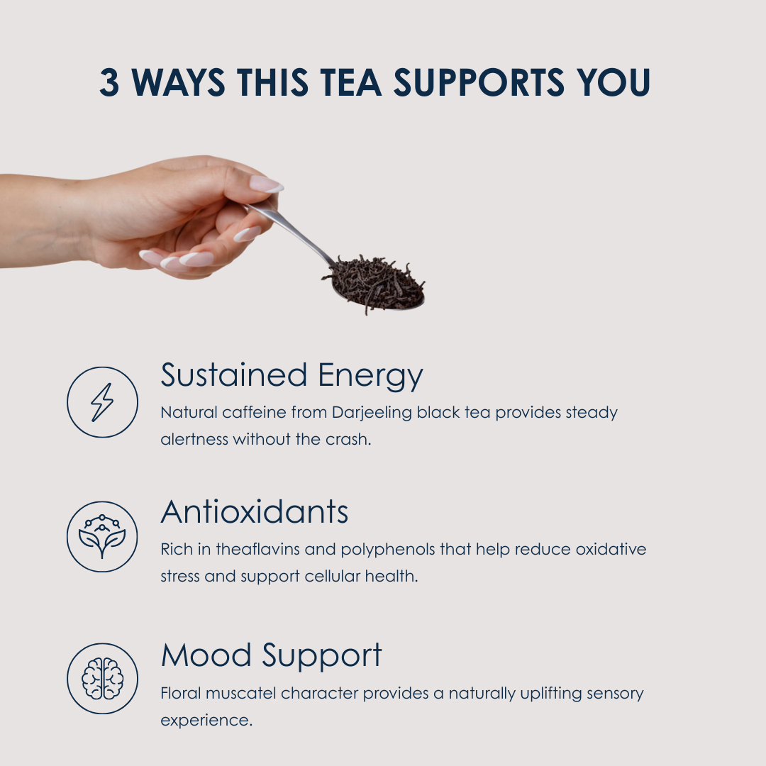 Our Darjeeling is a premium second flush harvest, prized for its rich muscatel flavour and floral character. Organically grown in the Himalayan foothills, it comes from one of the finest tea gardens in the world - often called the “champagne of teas.”