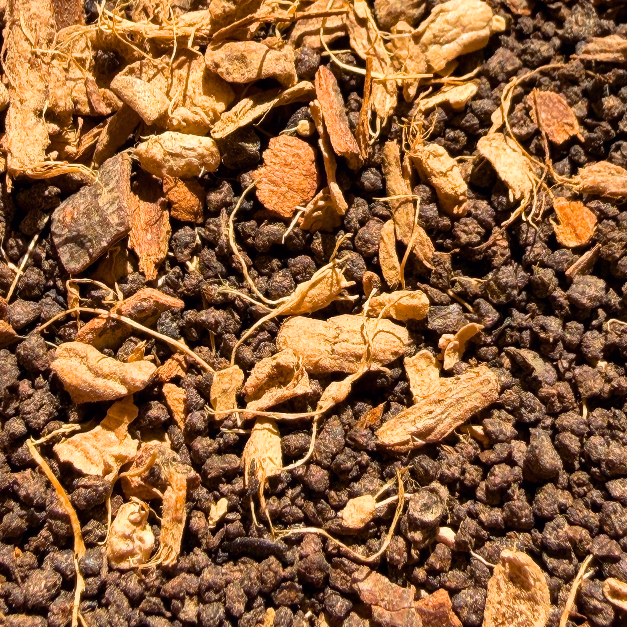 Decaffeinated black tea, ginger, cinnamon, cardamom, black & white pepper, clove, nutmeg