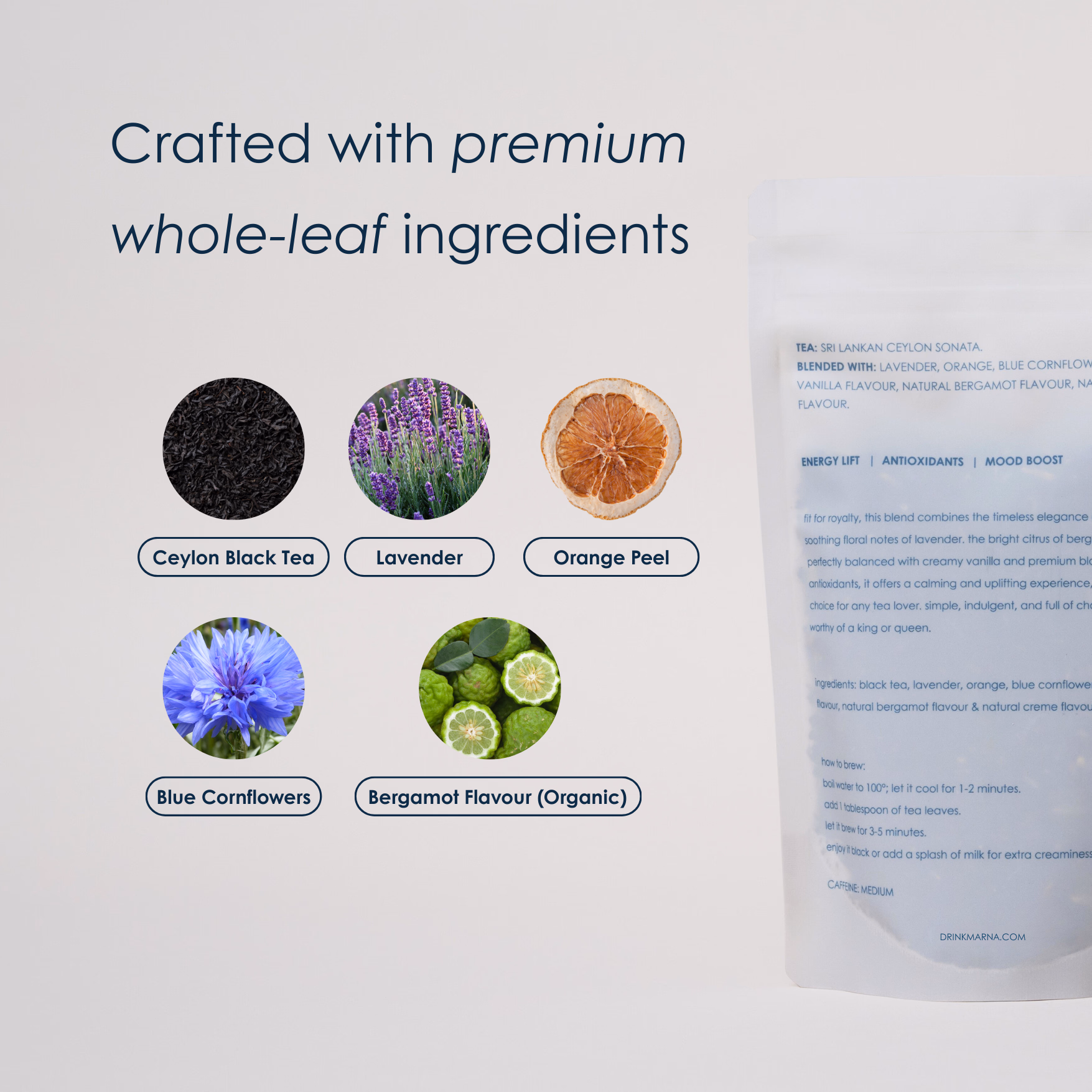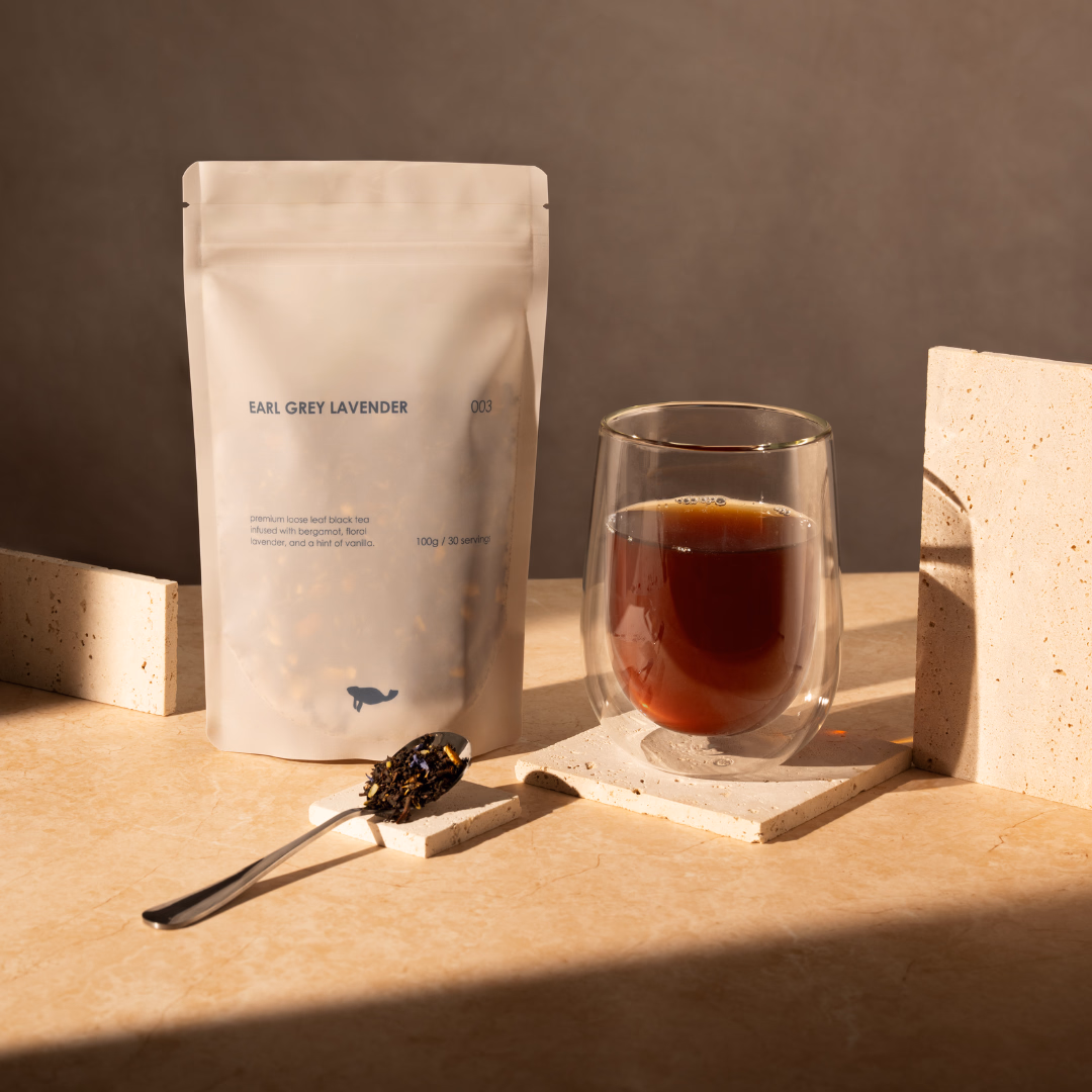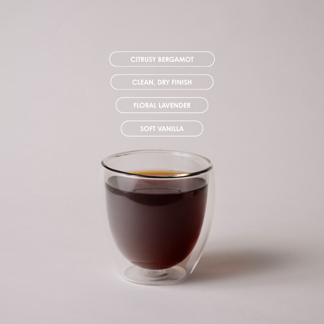 A refined black tea infused with bright bergamot, soothing lavender, and creamy vanilla. Elegant and aromatic, this blend balances citrus, floral, and smooth notes for a truly uplifting cup.