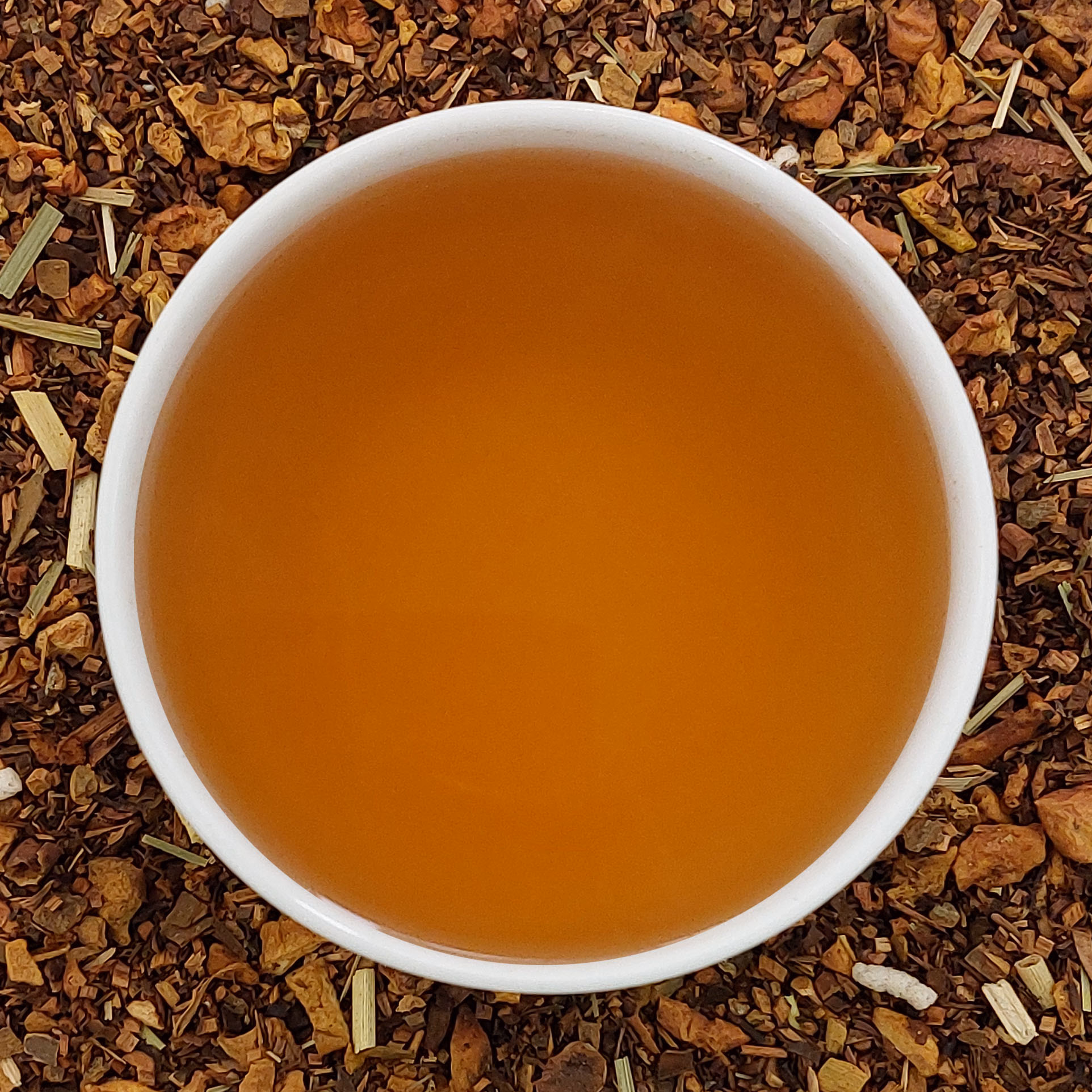 Ingredients: Honeybush (min 49%), Cinnamon pieces (min 10%), apple pieces (min 20%), sugar crystals, aroma, lemon grass.