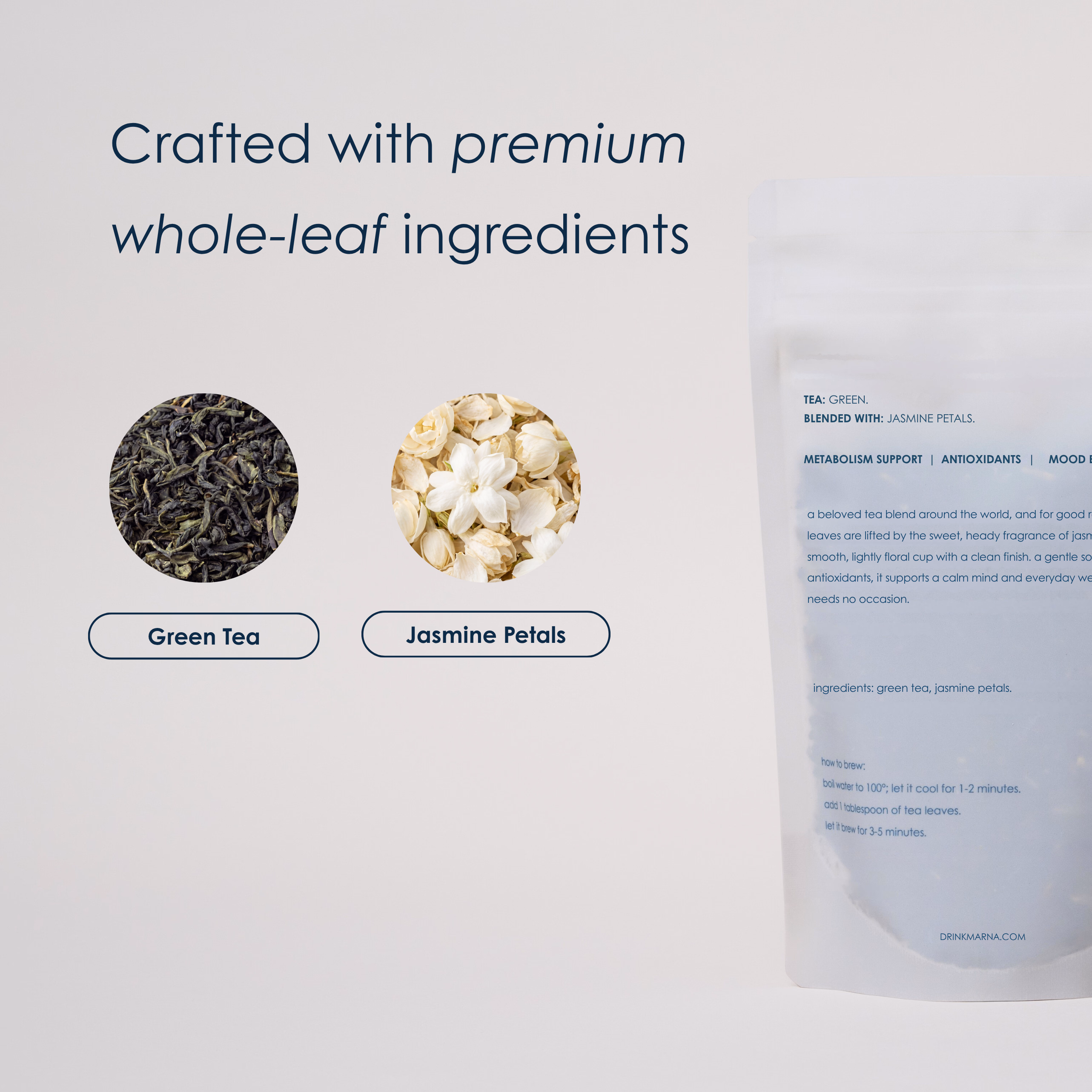 - Fresh green tea with a captivating floral jasmine finish
