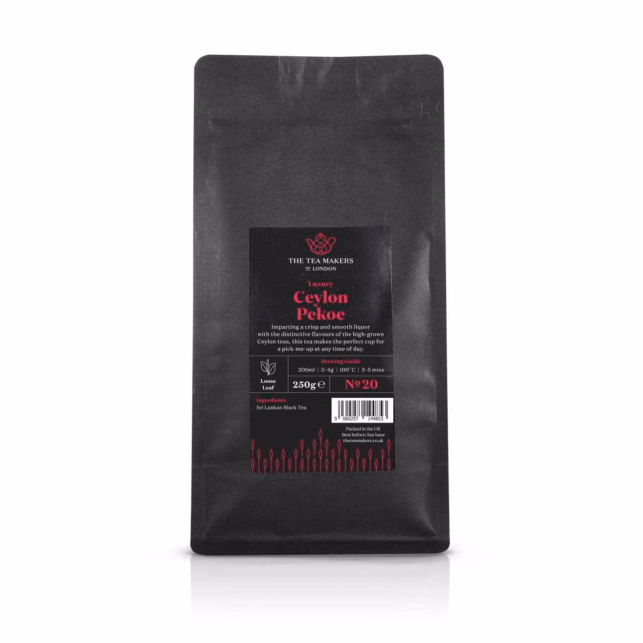 Crisp yet smooth, with a comforting aroma of caramel and biscuits, our luxury loose-leaf Ceylon Pekoe tea is a versatile black tea that works equally well as a morning brew or afternoon pick-you-up.