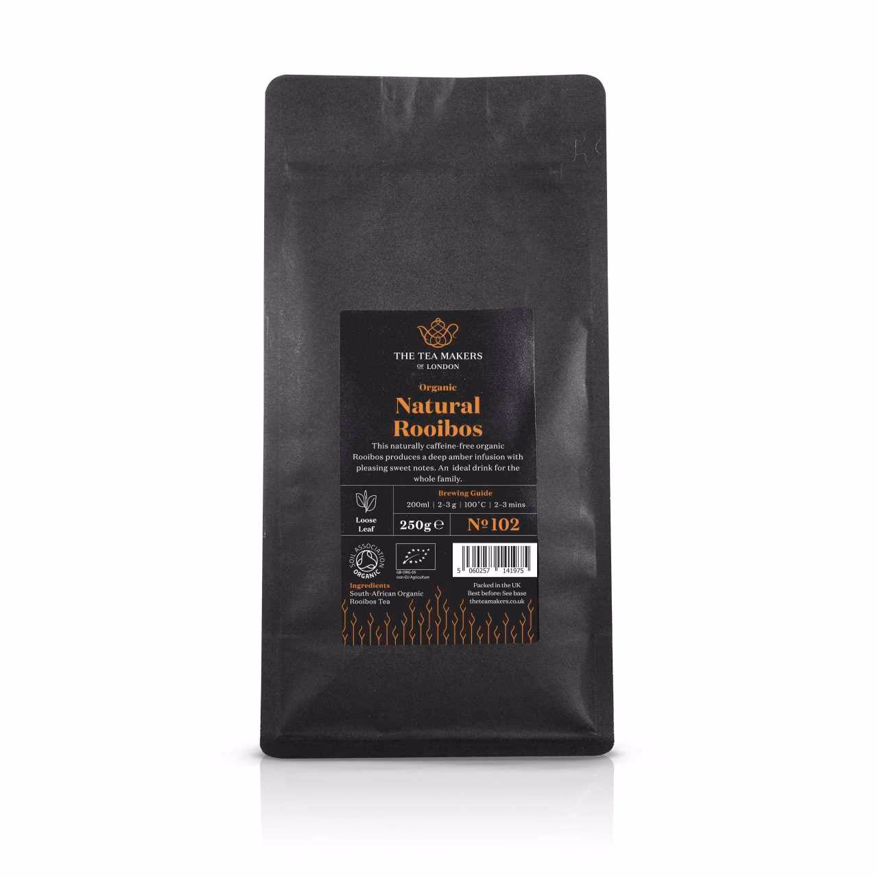 Grown in South Africa, our Organic Rooibos loose-leaf tea is a full-bodied infusion with tangy, sweet notes that make it an ideal alternative breakfast tea. Despite its dark orange colour and caramel aroma, this healthy tea is low in tannins and is naturally caffeine free, so it can also be enjoyed by the entire family, and drunk late in the evening as a soothing bedtime brew.