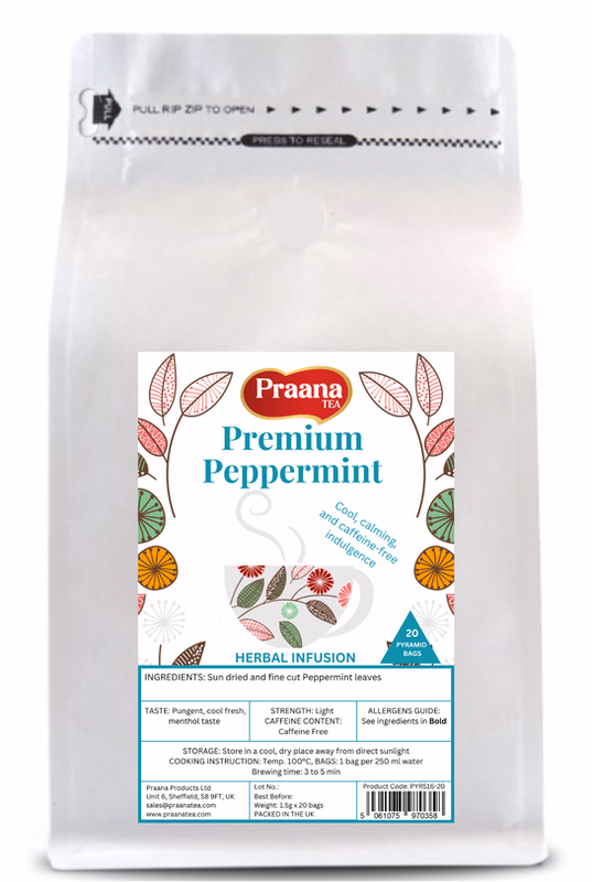 Refresh your senses with our Premium Peppermint Herbal Infusion, a naturally caffeine-free, 100% pure peppermint tea crafted for ultimate freshness and flavour. Made from carefully selected, premium peppermint leaves, this herbal tea delivers a smooth, cool minty taste and invigorating aroma with every sip.