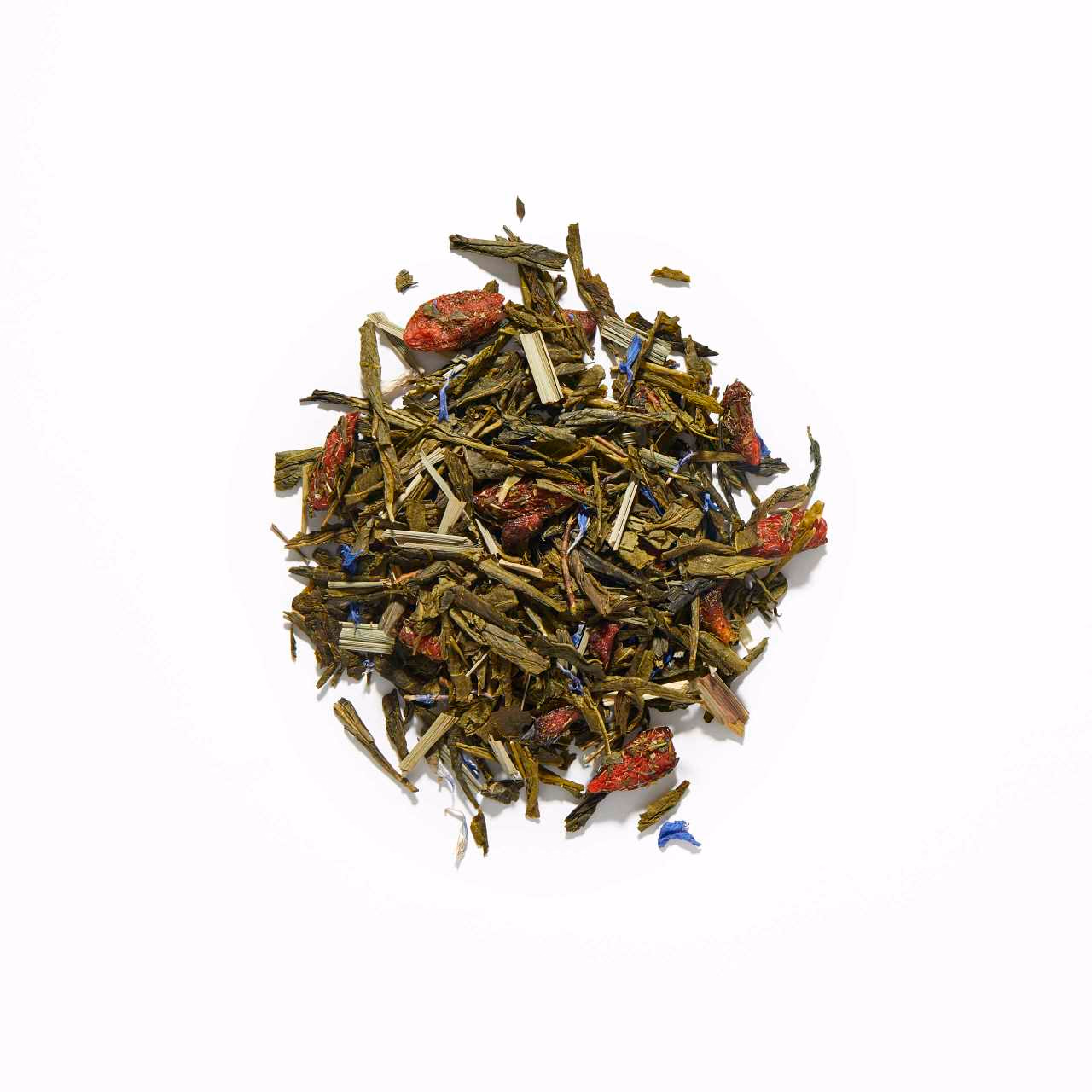 To create this healthy loose leaf tea, long leaves of premium green tea leaves have been gently hand-rolled and mixed with goji berries, lemongrass, pomegranate seeds and cornflower blossom. Brewing to a light reddish hue, it has an aroma full of fresh, fruity notes and a distinctive flavour that offers a harmonious balance of sencha, sweet goji berries and pomegranate, plus a hint of citrus from the lemongrass.