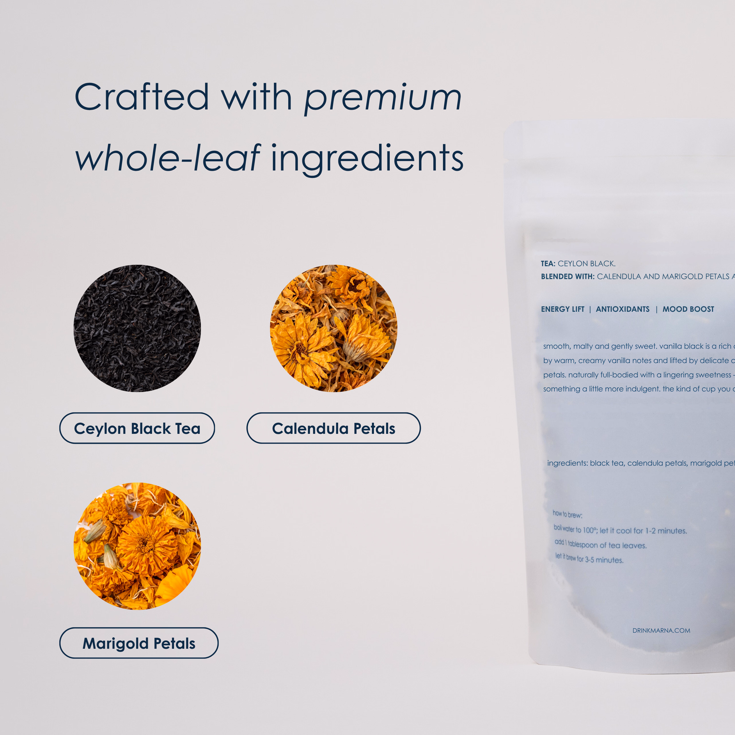 - Gentle energy lift from black tea