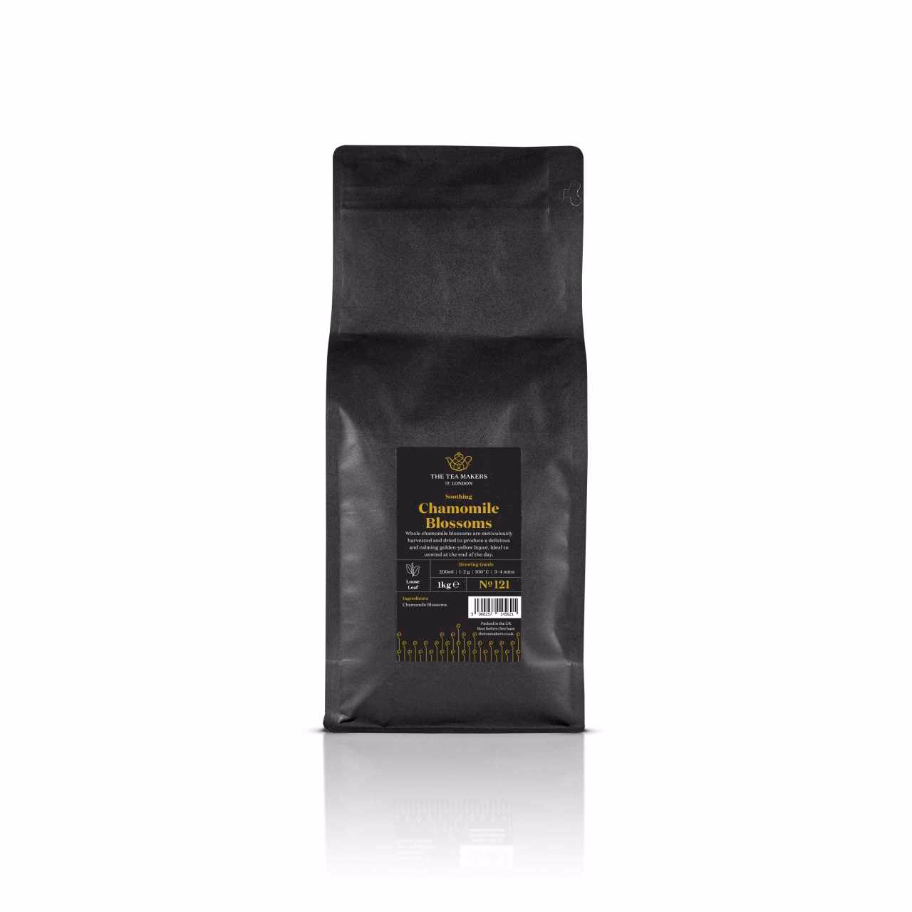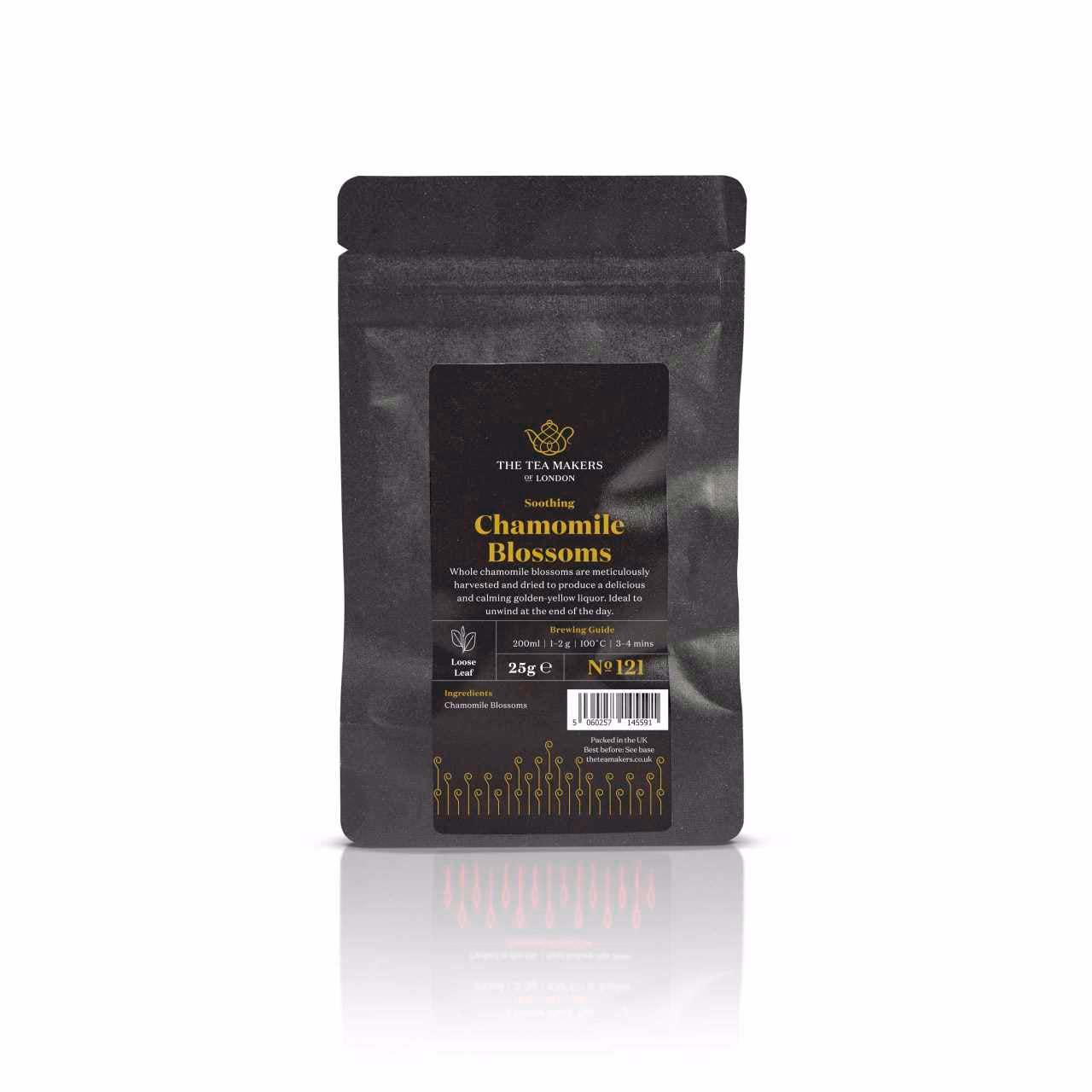 Harvested in spring, only the finest chamomile flowers are selected for this luxury tea, which has a delicious mellow sweetness and characteristic hints of apple. (Chamomile's name is rooted in the ancient Greek word meaning 'ground apple'. ) The plant itself is a member of the daisy family and the whole flowers are picked after they bloom, then dried, during which the white petals usually drop away, leaving the familiar fuzzy yellow head seen in high-quality chamomile tisanes.