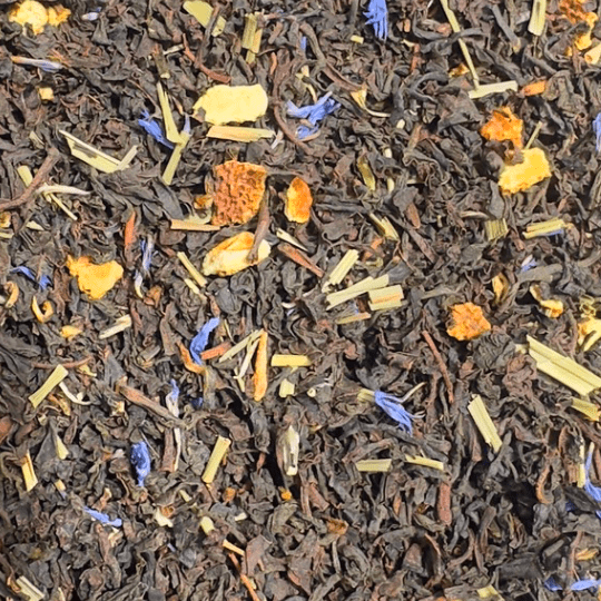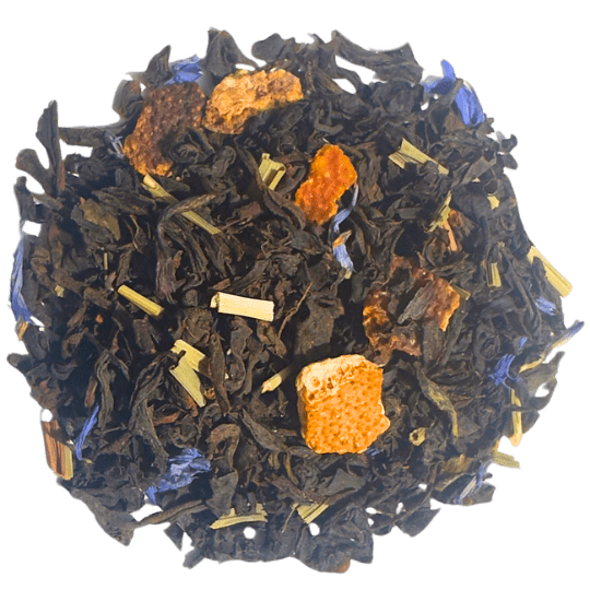Black tea, Lemongrass leaves, Orange pieces, Cornflower petals, natural flavouring